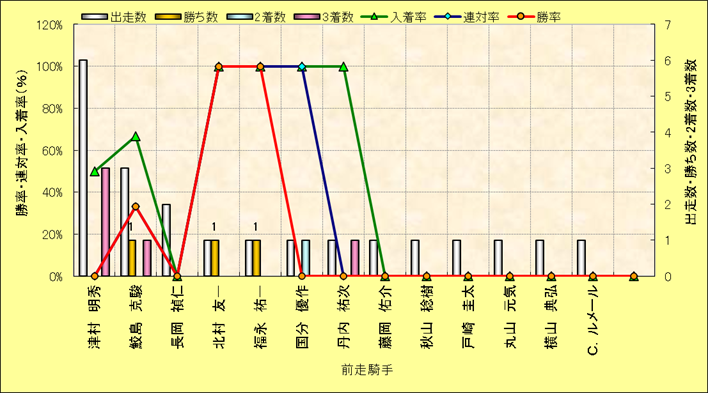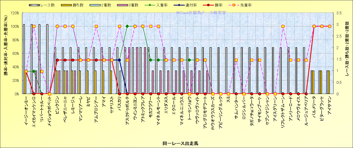 ライバル(相性)解析 同一レースに下記馬が出走した場合の成績とその馬に先着する先着率 |