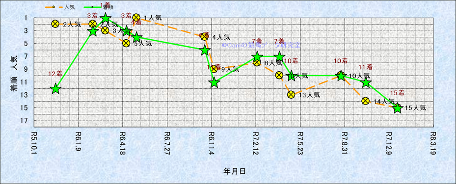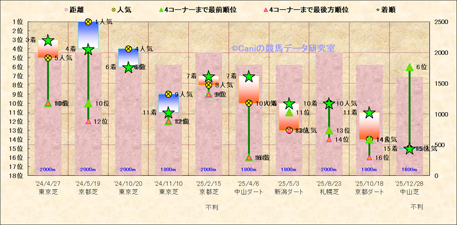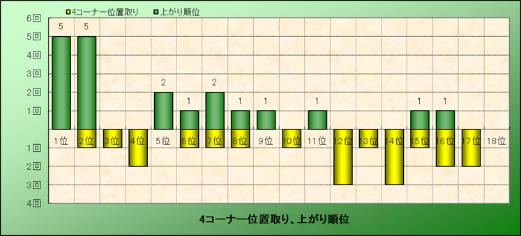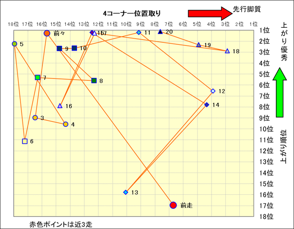 脚質解析 近20レースの4コーナーでの位置取りと上がり順位(頭数補正後) |