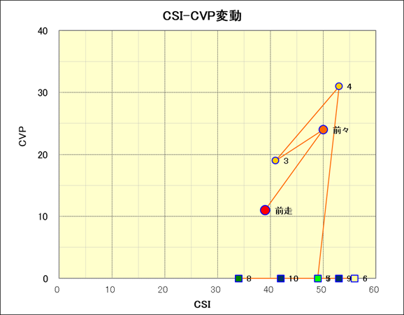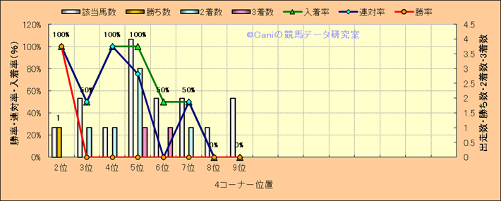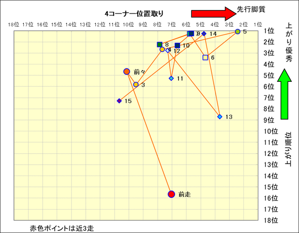 近走における4コーナーでの位置取りと上がり順位(頭数補正後) |