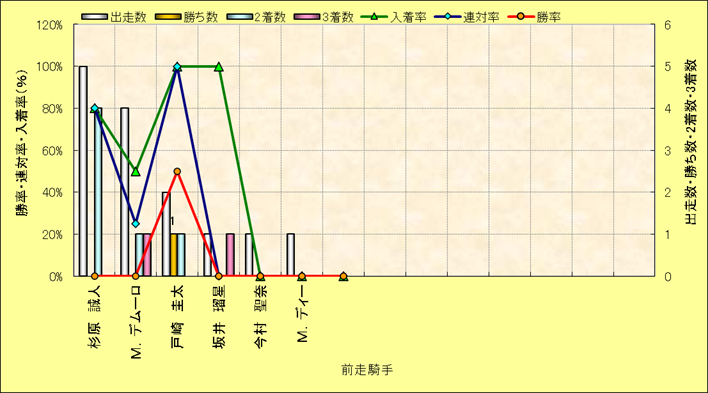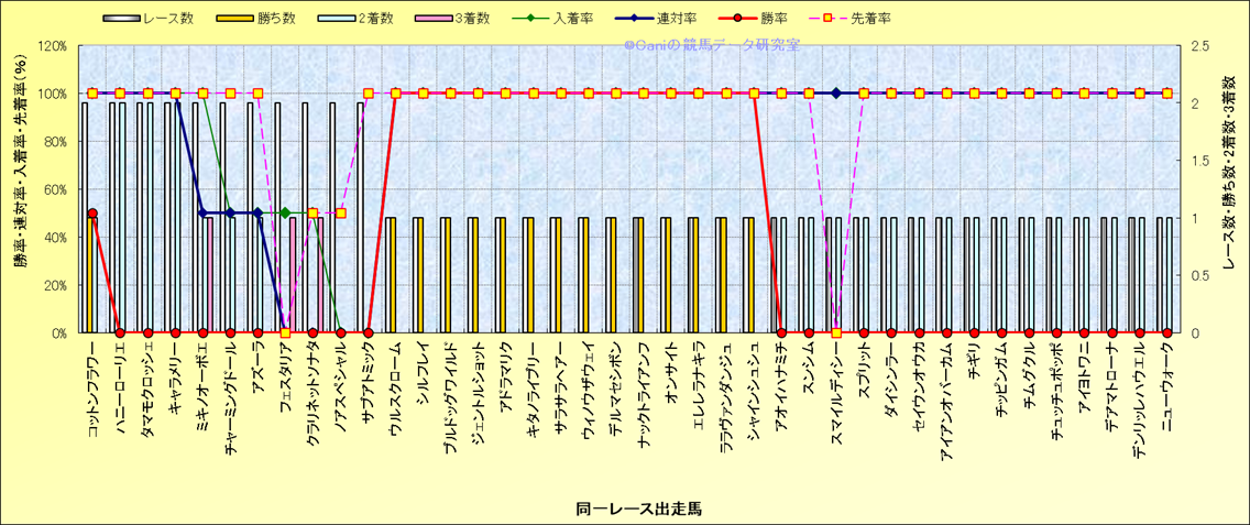 ライバル(相性)解析 同一レースに下記馬が出走した場合の成績とその馬に先着する先着率 |