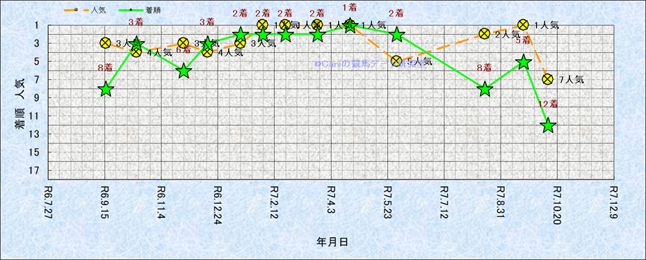 脚質解析 近20レースの4コーナーでの位置取りと上がり順位(頭数補正後) |