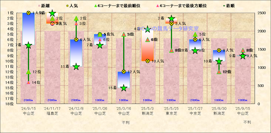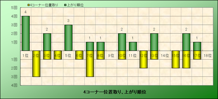 脚質解析 近20レースの4コーナーでの位置取りと上がり順位(頭数補正後) |