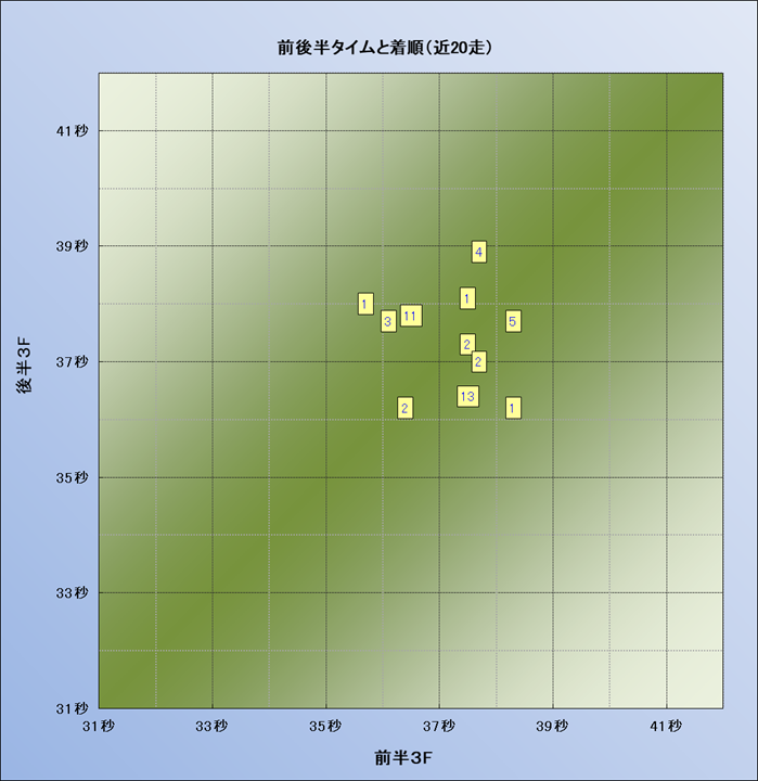 脚質解析 近20レースの4コーナーでの位置取りと上がり順位(頭数補正後) |