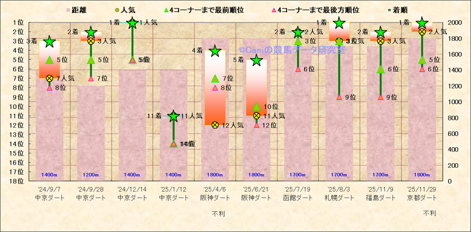 近10走 人気−着順-位置取りの推移 |