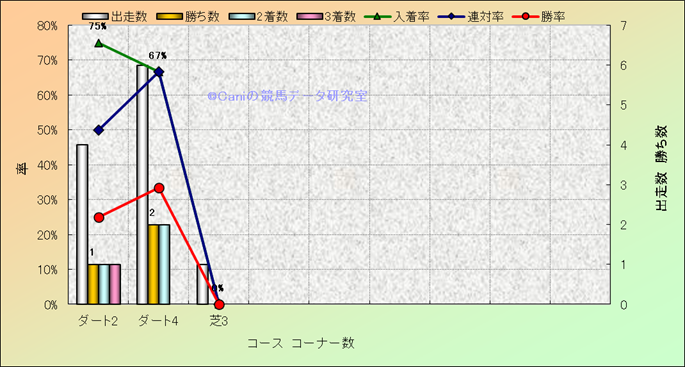 コース、コーナー数別成績(平地) |