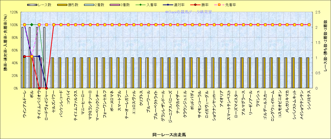 ライバル(相性)解析 同一レースに下記馬が出走した場合の成績とその馬に先着する先着率 |