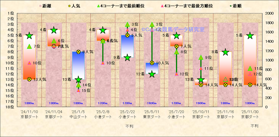 近10走 人気−着順-位置取りの推移 |
