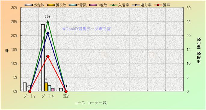 コース、コーナー数別成績(平地) |