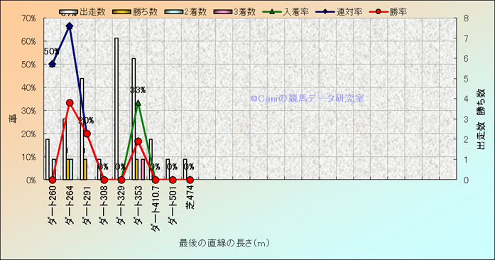 コース、最後の直線の長さ別成績(平地) |