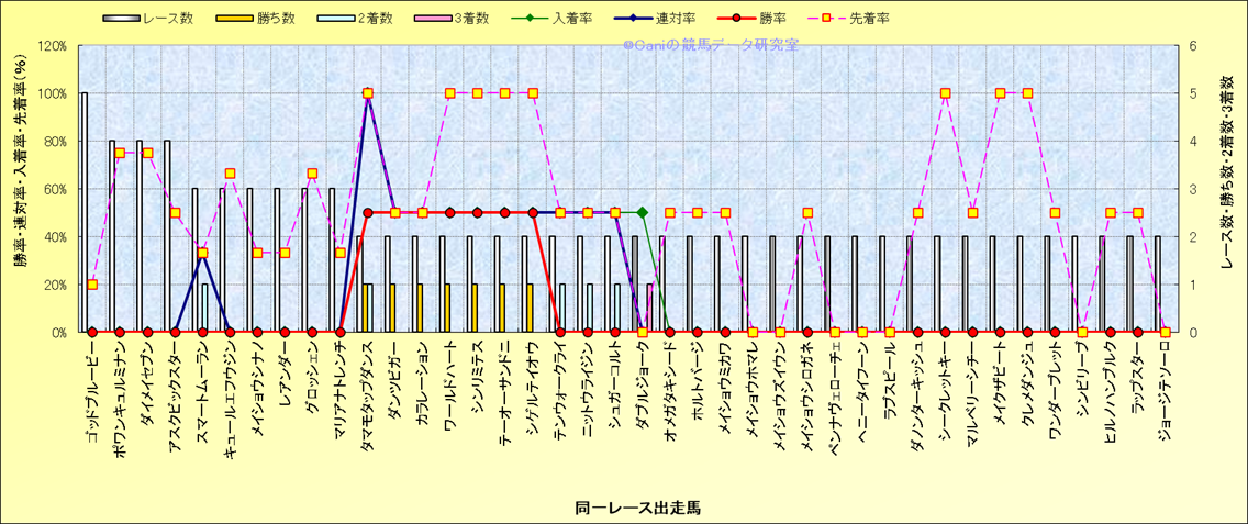 ライバル(相性)解析 同一レースに下記馬が出走した場合の成績とその馬に先着する先着率 |