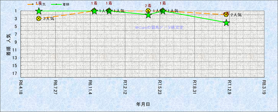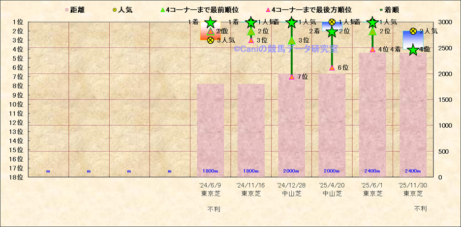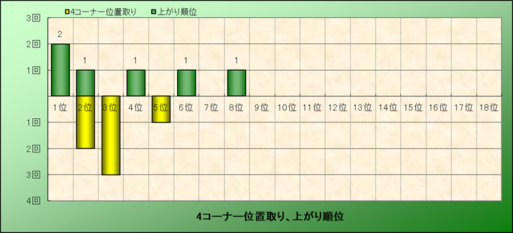 脚質解析 近20レースの4コーナーでの位置取りと上がり順位(頭数補正後) |