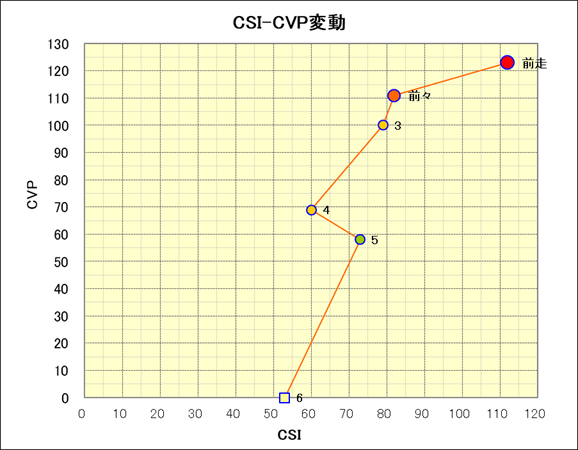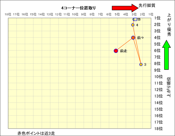 近走における4コーナーでの位置取りと上がり順位(頭数補正後) |