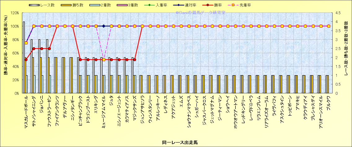 ライバル(相性)解析 同一レースに下記馬が出走した場合の成績とその馬に先着する先着率 |