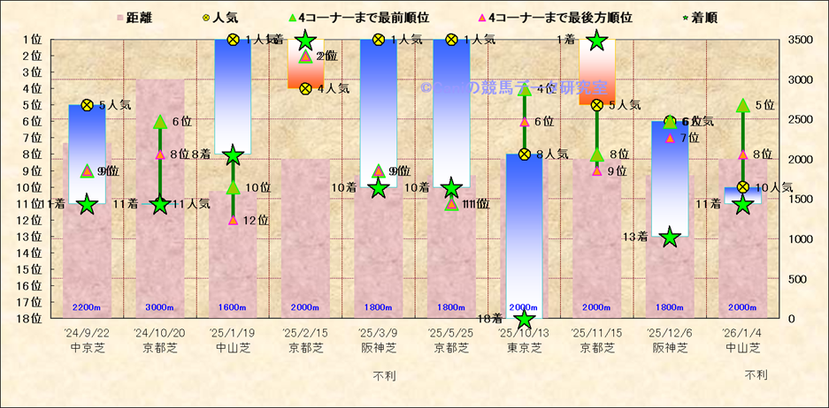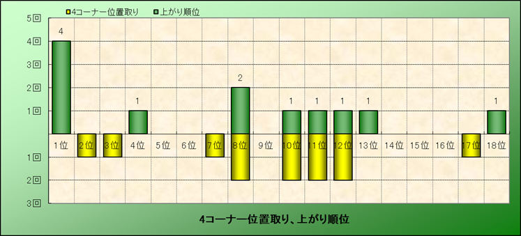 脚質解析 近20レースの4コーナーでの位置取りと上がり順位(頭数補正後) |