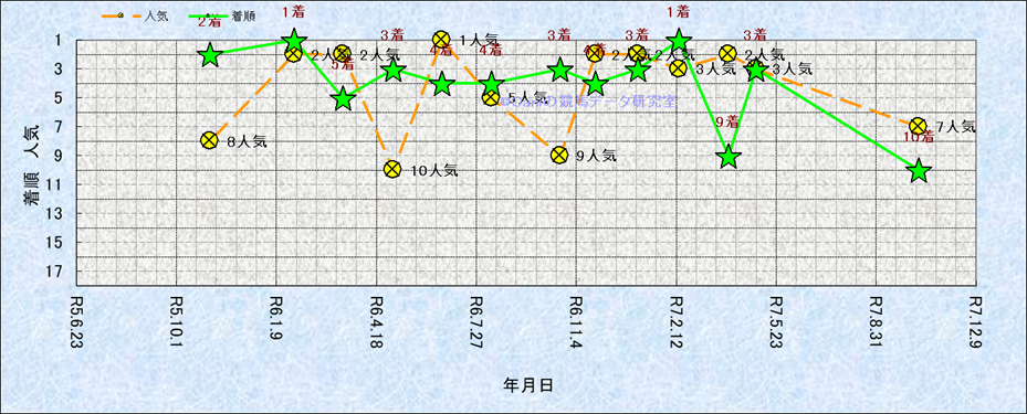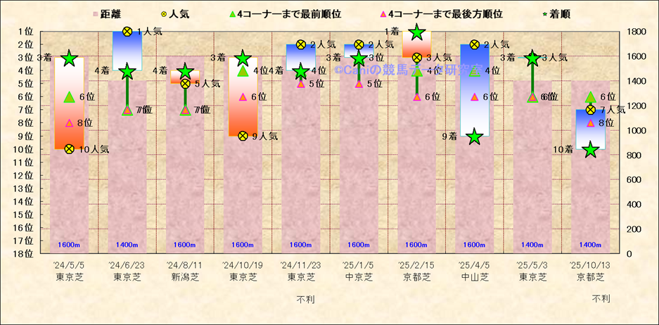 脚質解析 近20レースの4コーナーでの位置取りと上がり順位(頭数補正後) |