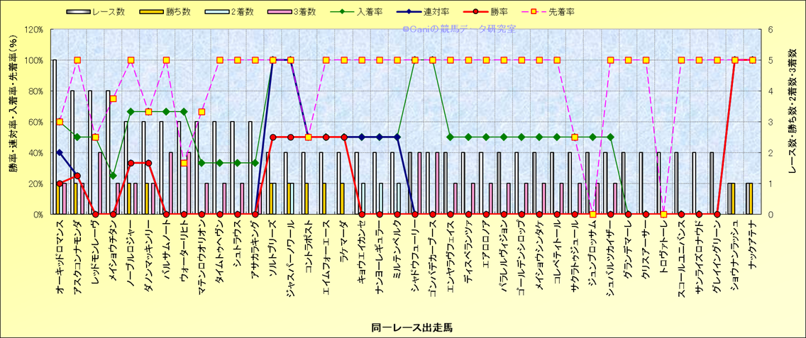 ライバル(相性)解析 同一レースに下記馬が出走した場合の成績とその馬に先着する先着率 |