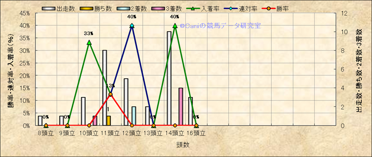 コース、最後の直線の高低差別成績(平地) |