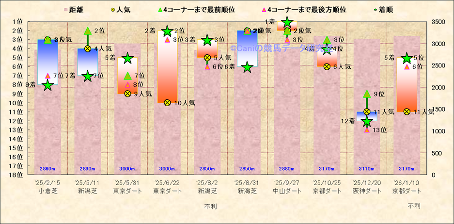 近10走 人気−着順-位置取りの推移 |
