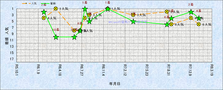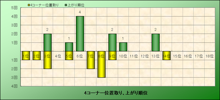 脚質解析 近20レースの4コーナーでの位置取りと上がり順位(頭数補正後) |