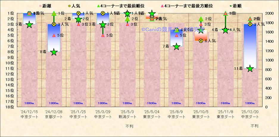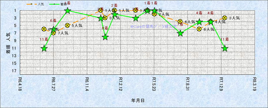 近10走 人気−着順-位置取りの推移 |