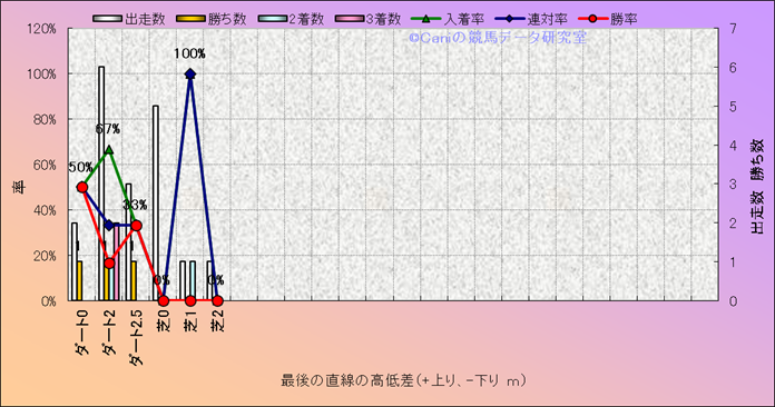コース、最後の直線の高低差別成績(平地) |