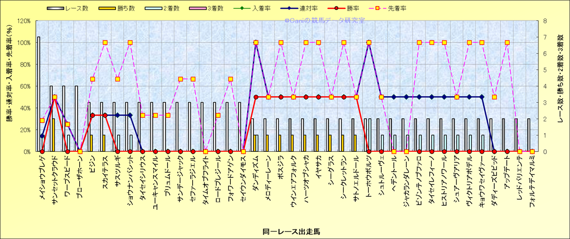 ライバル(相性)解析 同一レースに下記馬が出走した場合の成績とその馬に先着する先着率 |