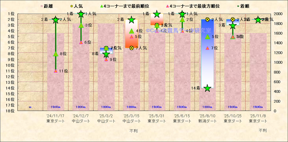 近10走 人気−着順-位置取りの推移 |