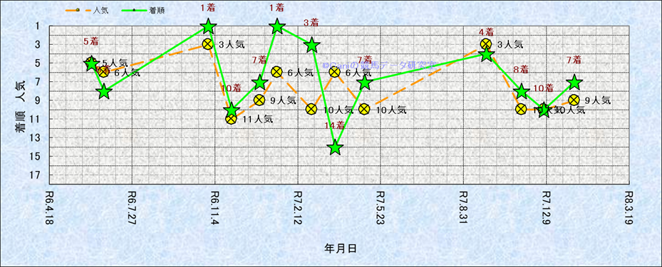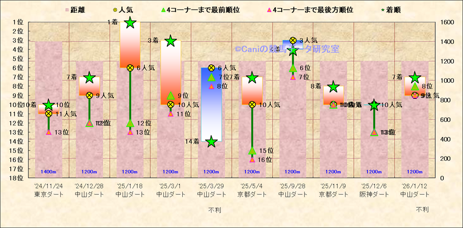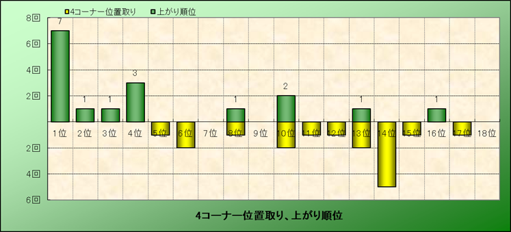 脚質解析 近20レースの4コーナーでの位置取りと上がり順位(頭数補正後) |