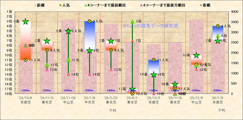 近10走 人気−着順-位置取りの推移 |