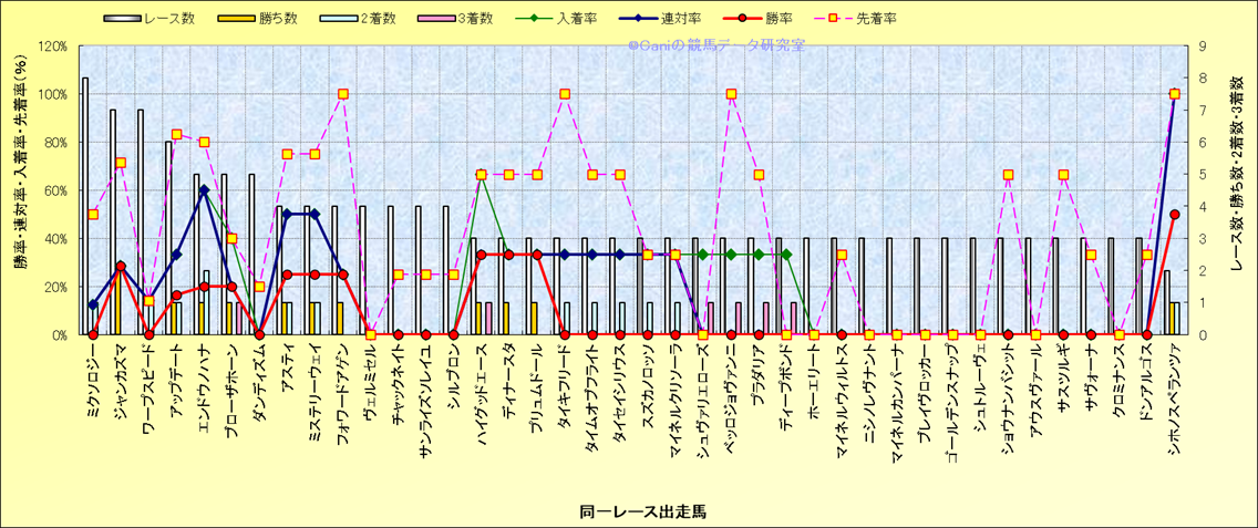 ライバル(相性)解析 同一レースに下記馬が出走した場合の成績とその馬に先着する先着率 |