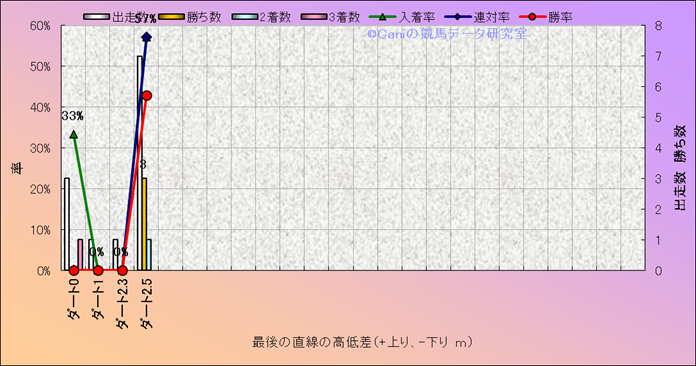 コース、最後の直線の高低差別成績(平地) |
