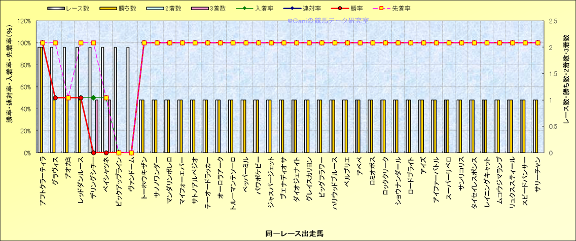 ライバル(相性)解析 同一レースに下記馬が出走した場合の成績とその馬に先着する先着率 |