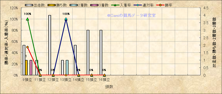 コース、最後の直線の高低差別成績(平地) |