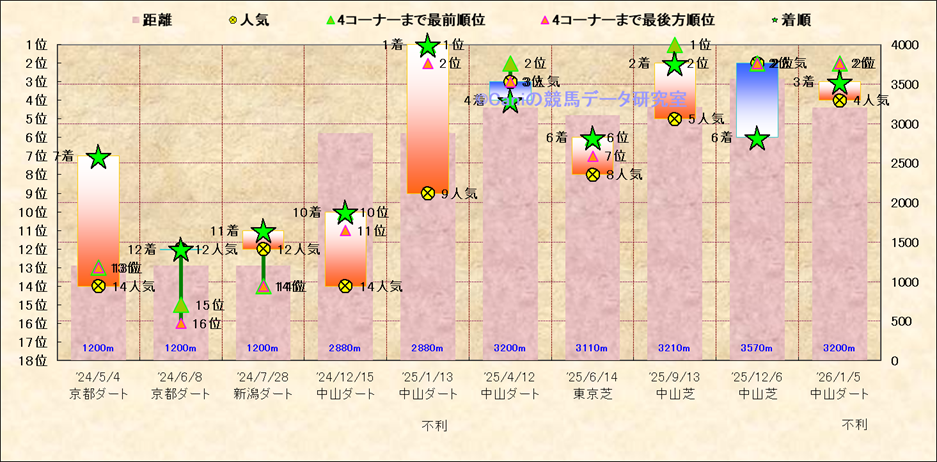 近10走 人気−着順-位置取りの推移 |