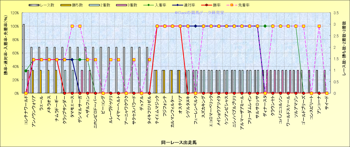 ライバル(相性)解析 同一レースに下記馬が出走した場合の成績とその馬に先着する先着率 |