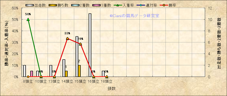 コース、最後の直線の高低差別成績(平地) |