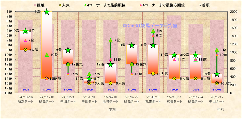 近10走 人気−着順-位置取りの推移 |