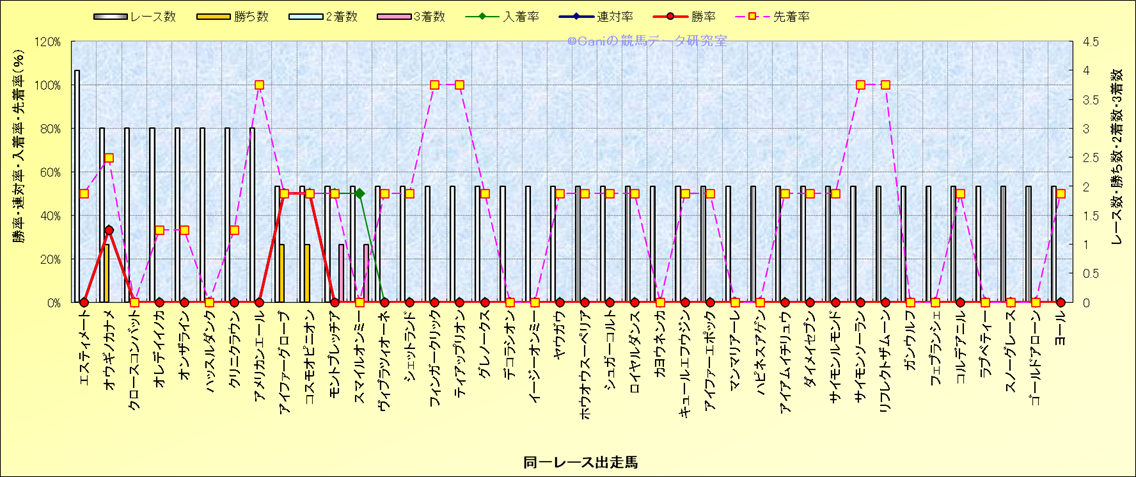 ライバル(相性)解析 同一レースに下記馬が出走した場合の成績とその馬に先着する先着率 |