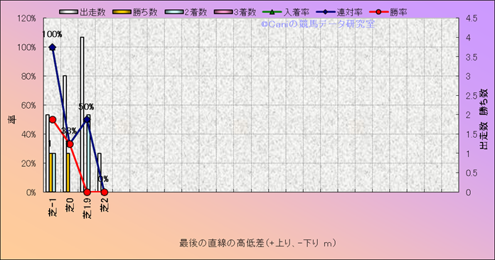コース、最後の直線の高低差別成績(平地) |