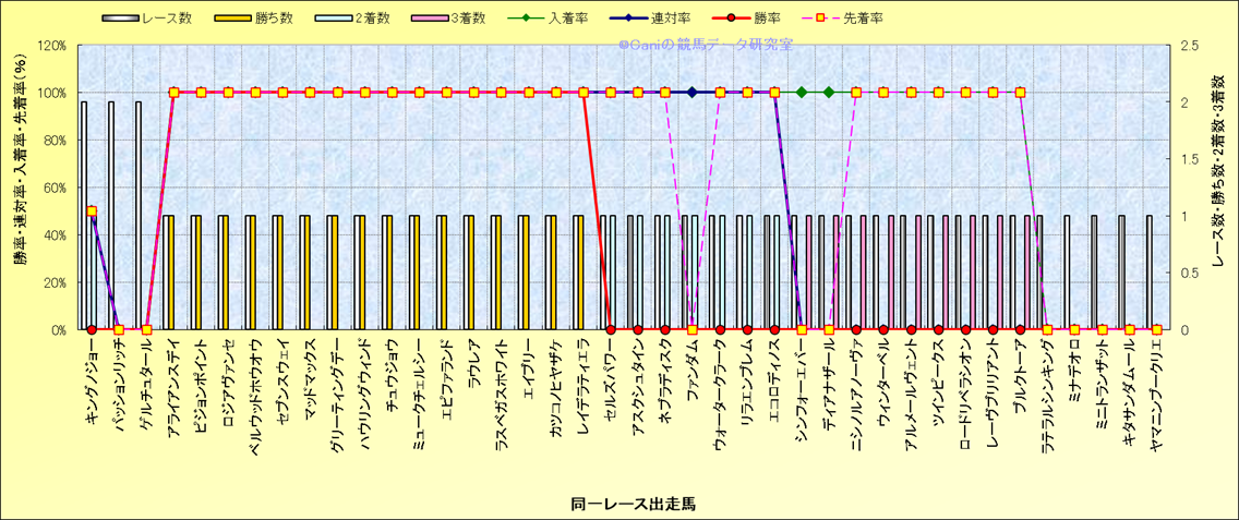 ライバル(相性)解析 同一レースに下記馬が出走した場合の成績とその馬に先着する先着率 |