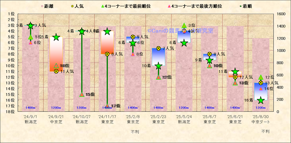 近10走 人気−着順-位置取りの推移 |
