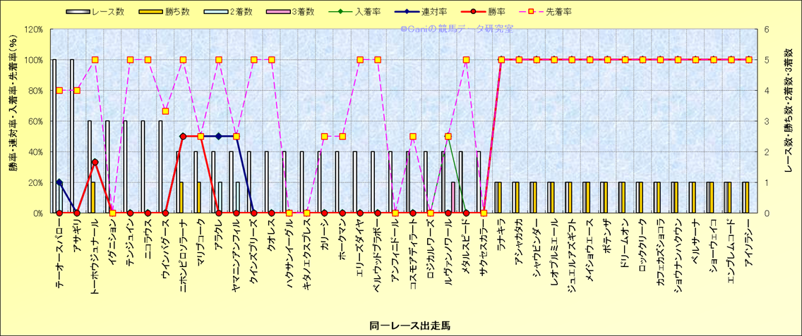 ライバル(相性)解析 同一レースに下記馬が出走した場合の成績とその馬に先着する先着率 |