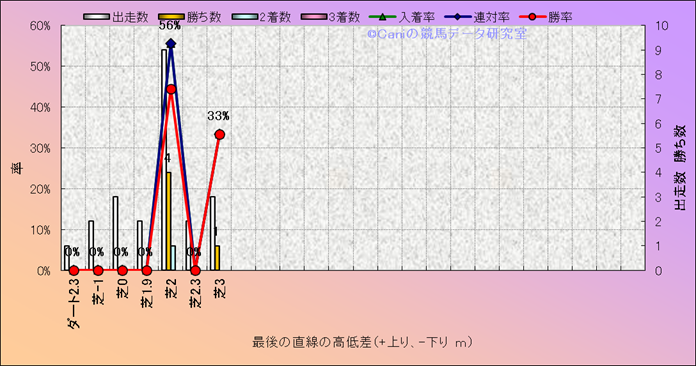 コース、最後の直線の高低差別成績(平地) |