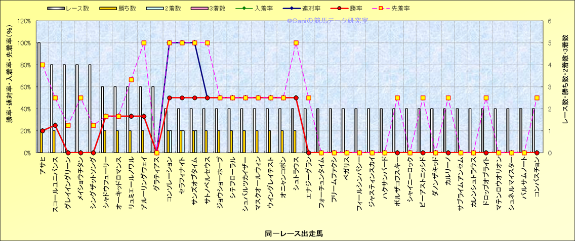 ライバル(相性)解析 同一レースに下記馬が出走した場合の成績とその馬に先着する先着率 |