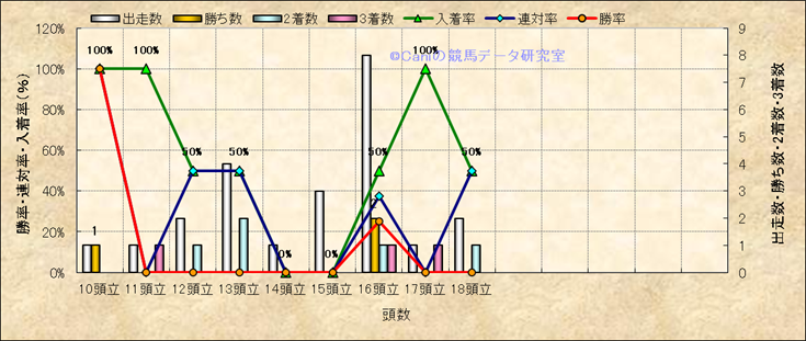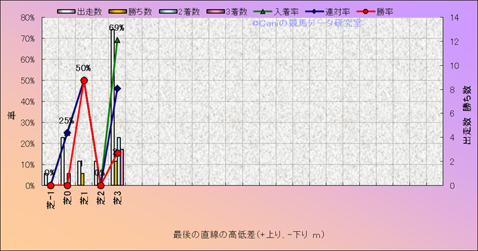 コース、最後の直線の高低差別成績(平地) |