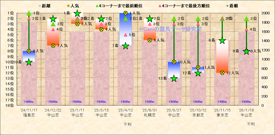 近10走 人気−着順-位置取りの推移 |