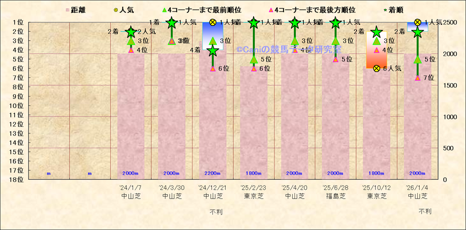 近10走 人気−着順-位置取りの推移 |