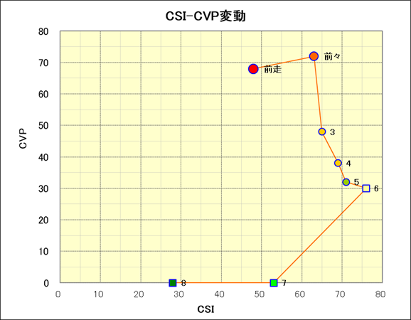 走行距離とCSI値の相関 |