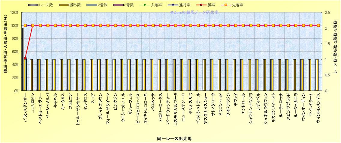 ライバル(相性)解析 同一レースに下記馬が出走した場合の成績とその馬に先着する先着率 |