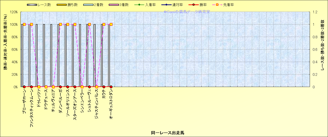 ライバル(相性)解析 同一レースに下記馬が出走した場合の成績とその馬に先着する先着率 |